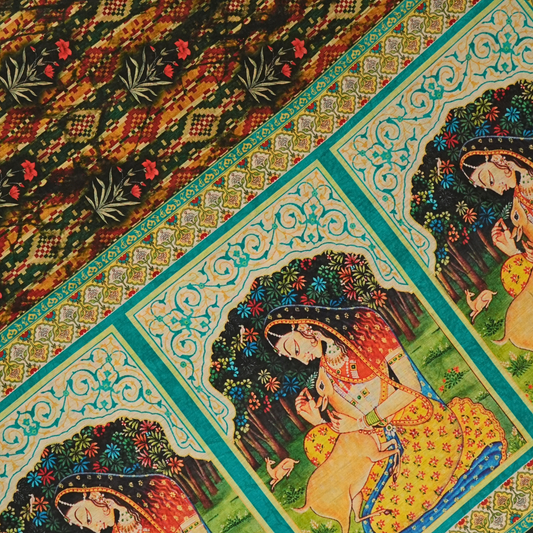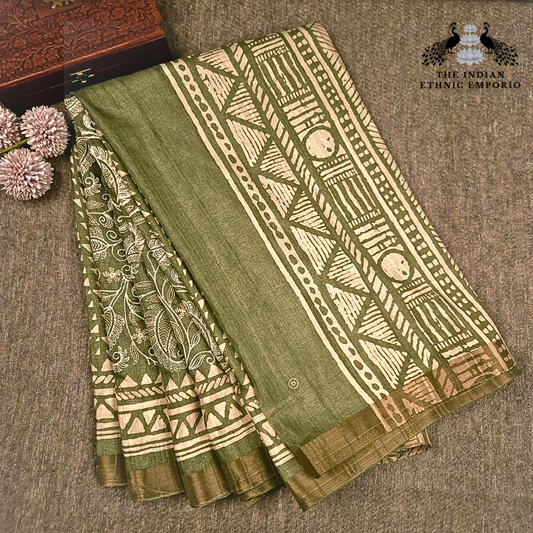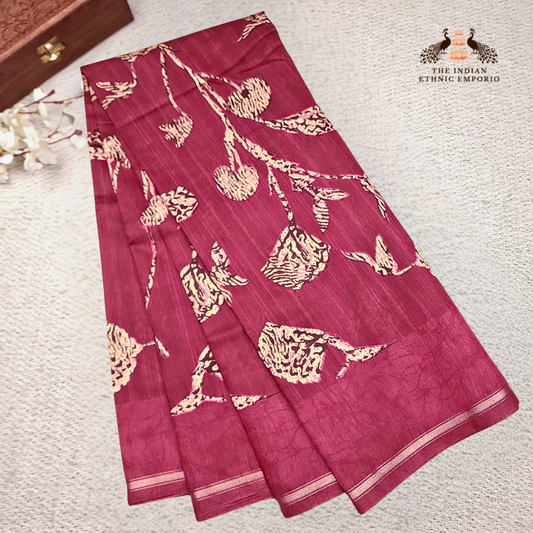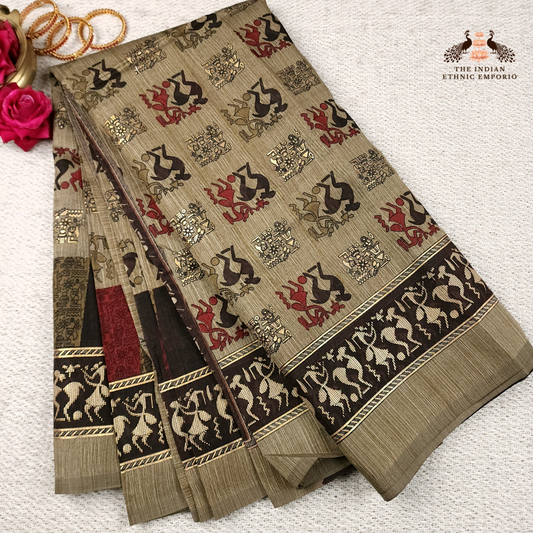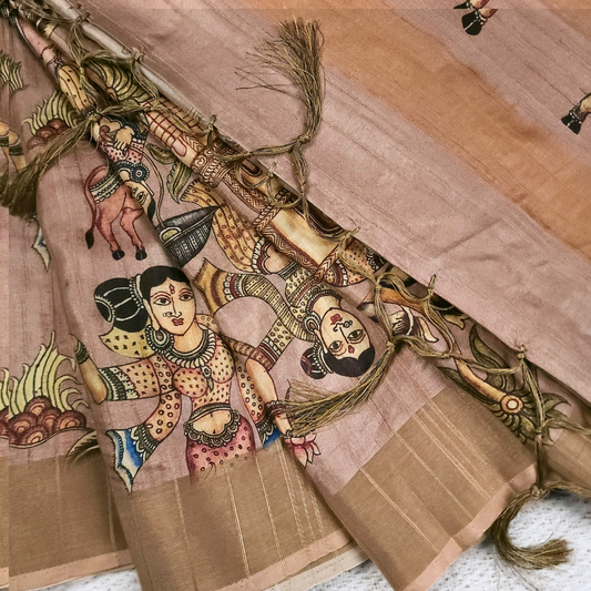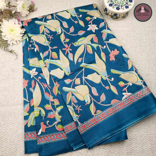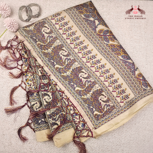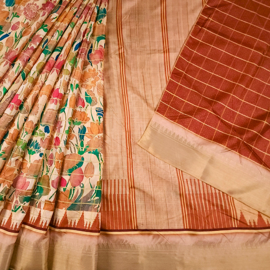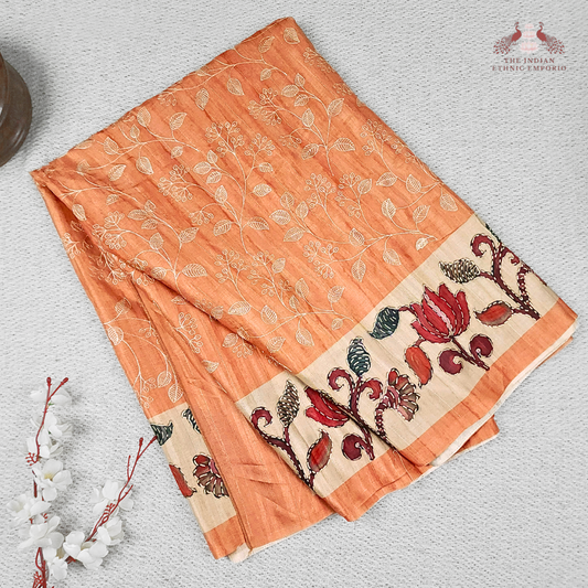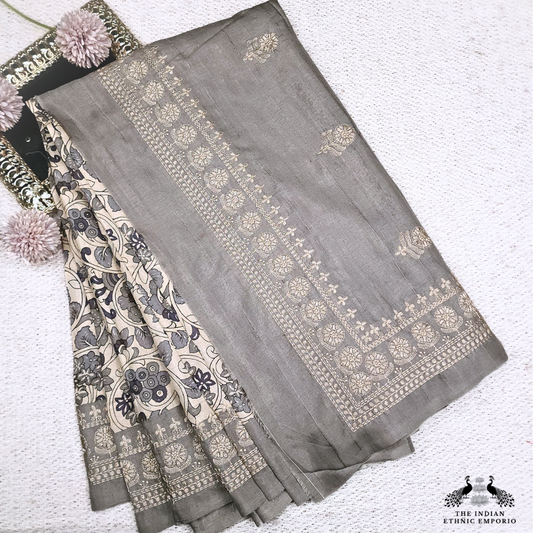 Bhagalpuri Silk Saree with Kalamkari Print & Lucknowi Chikankari Embroidery