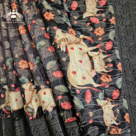 Beautiful Black Handloom Silk Pichwai Print Saree