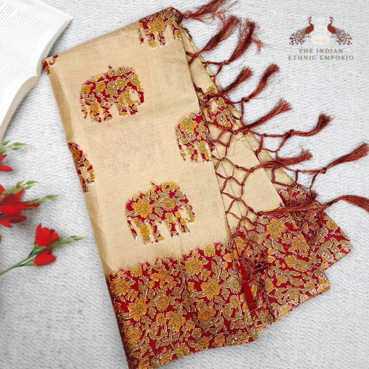 Almond Peach Color Gicha Silk Printed Saree From 'Gicha Glory' Collection- APSARA