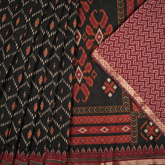 Black & Red color Pure Sambalpur Cotton Saree | Ikkat design | Jugalbandi Collection - Design 1