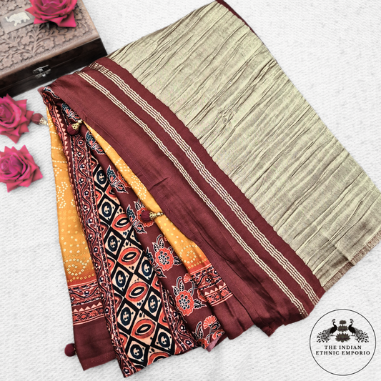 BANDHEJ BLISS : AJRAKH EDITION - Premium Modal Silk Sarees With Fusion Of Bandhani & Ajrakh Print