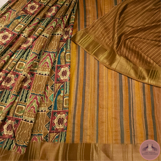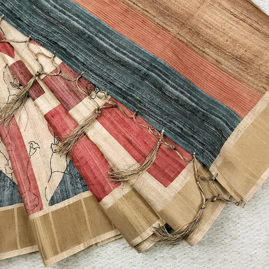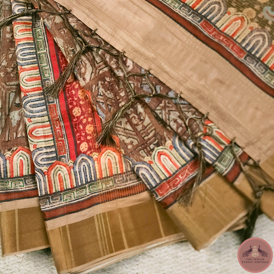 Rustic Beige color Gicha Silk Printed Saree From 'Gicha Glory' Collection- RUSTIC ROYALE