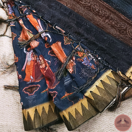Navy Blue Color God Figurine Printed Gicha Silk Saree From 'Gicha Glory' Collection- DEVLOK