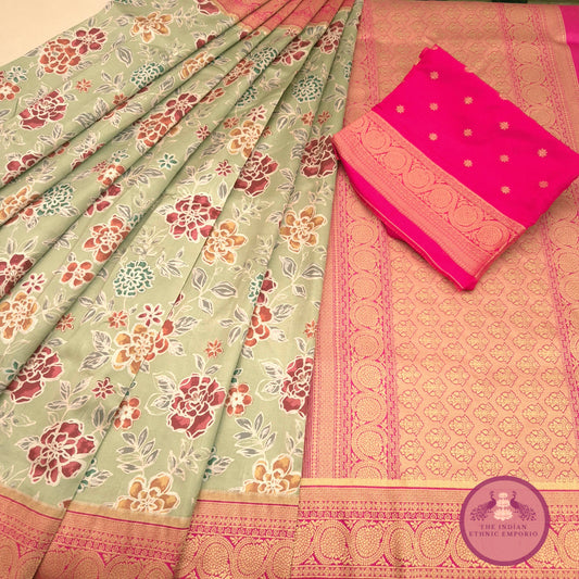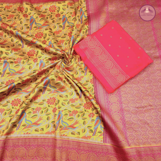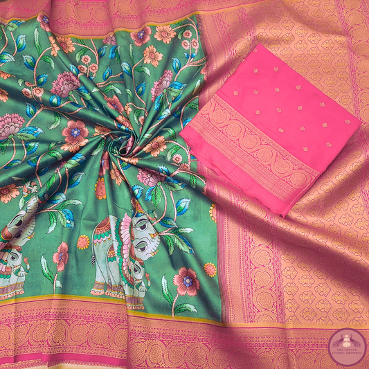 Gulabo Collection – Green Silk Saree with Birds for Women