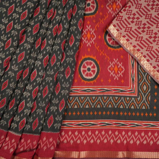 Black & Red color Pure Sambalpur Cotton Saree | Ikkat design | Jugalbandi Collection - Design 1