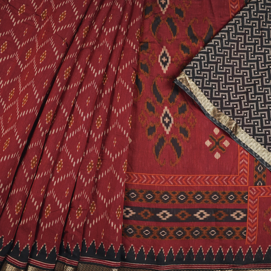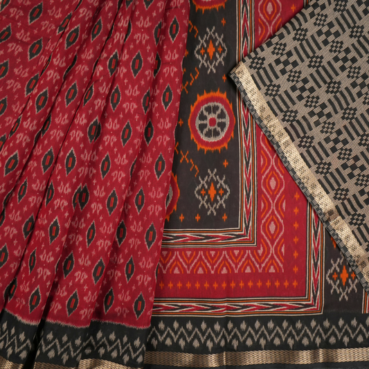 Red & Black Color Pure Samabalpur Cotton Saree | Ikkat Design | Jugalbandi Collection - Design 1