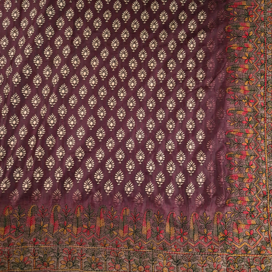 Purple Color Karigari Kantha Semi Tussar x Kantha Hand Embroidery x Hand Block Print for women