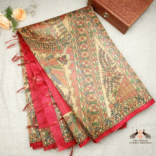 Vivah Mahotsava - Madhubani Print Tussar Silk Saree from THE SAREE STORY