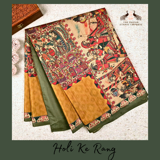 HOLI KE RANG - Madhubani Print Semi Tussar Silk Saree from THE SAREE STORY