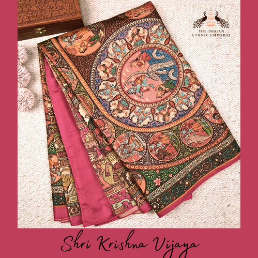 Shri Krishna Vijaya - Madhubani Print Tussar Silk Saree from THE SAREE STORY