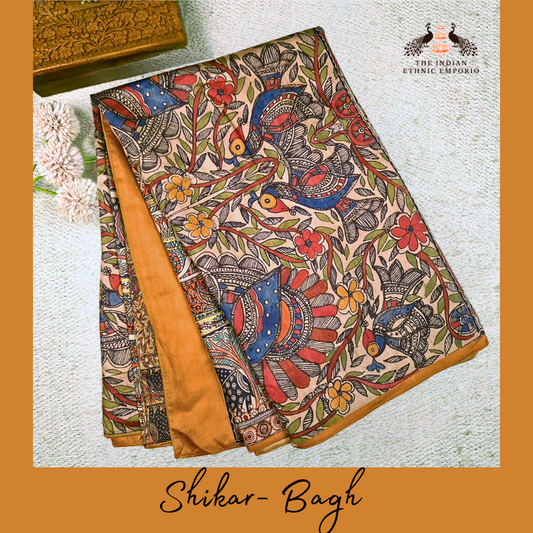 Shikaar Baagh - Madhubani Print Tussar Silk Saree from THE SAREE STORY