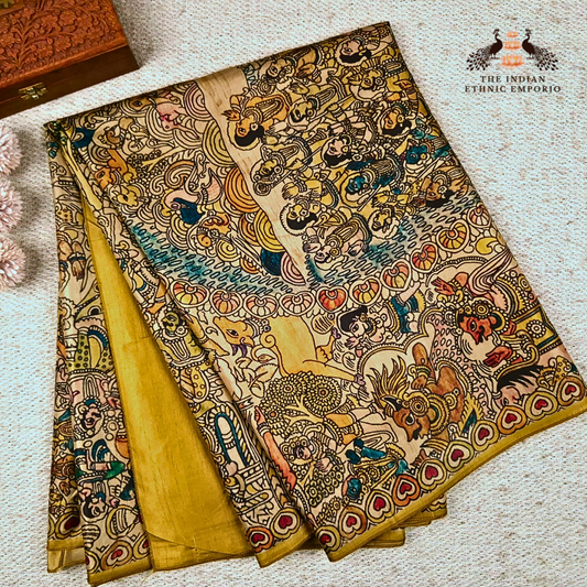 SHRI KRISHNA GOVARDHAN- Madhubani Print Tussar Silk Saree from THE SAREE STORY