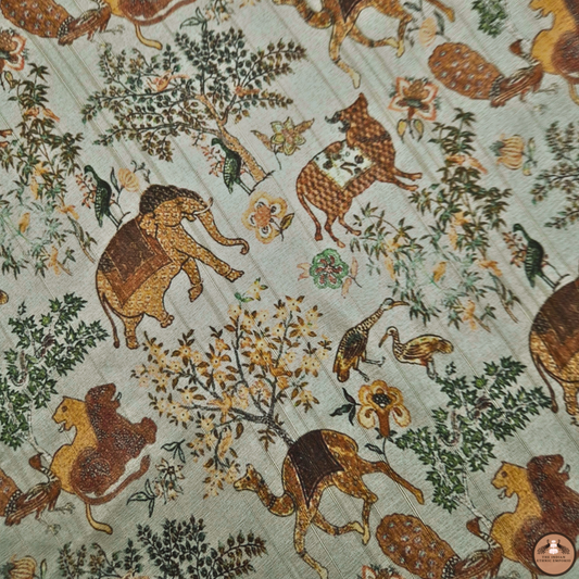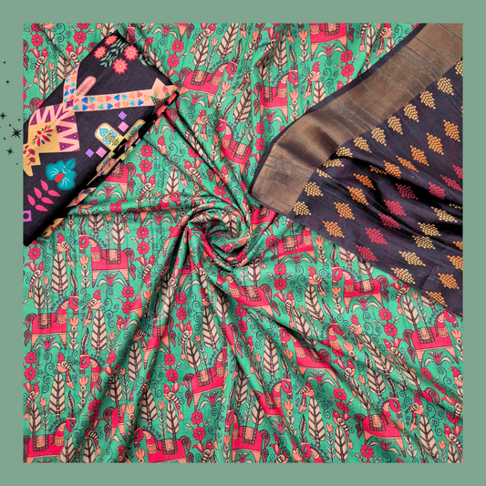 Satrangi Atrangi - Green & Red color Animal Horse Print Premium Gicha Silk Saree for Women