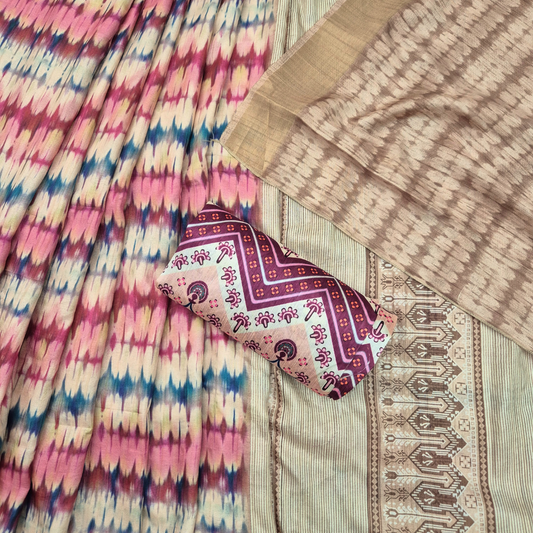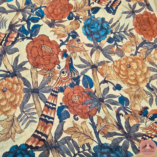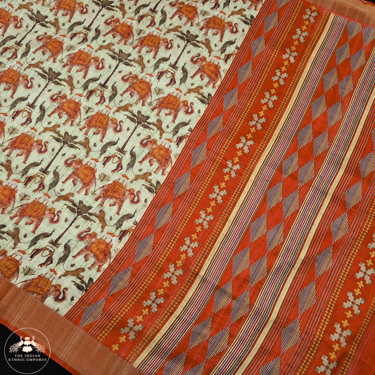 Satrangi Atrangi - Beige color Flora & Fauna Inspired Print Premium Gicha Silk Saree for Women