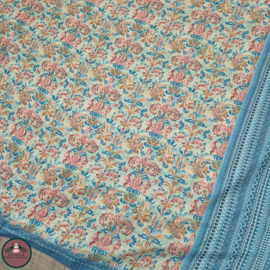 Satrangi Atrangi - Light Blue color Mughal Inspired Flora Print Premium Gicha Silk Saree for Women