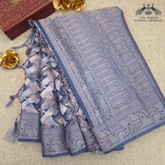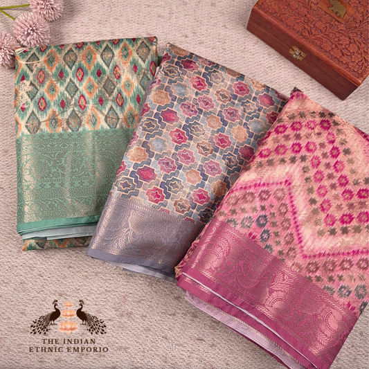 Our collection showcases a variety of silk types, each offering a unique charm. From the soft, eco-friendly allure of organic silk to the elegant sheen of semi tussar silk, and the refined beauty of Bhagalpuri silk, each variety has its own story to tell. Gicha silk's rustic appeal, raw silk's natural texture, and the lustrous shine of satin silk further enhance the diverse options available.