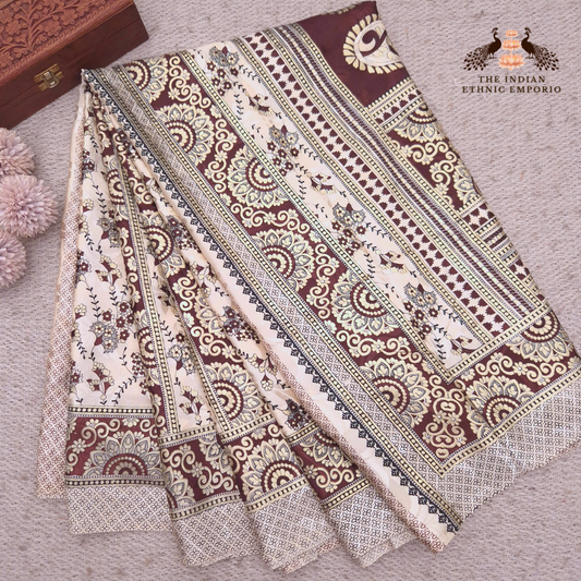 Mughal Inspired Printed Gicha Silk Saree From 'Gicha Glory' Collection- VINTAGE VIBES