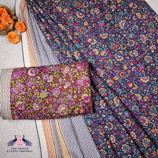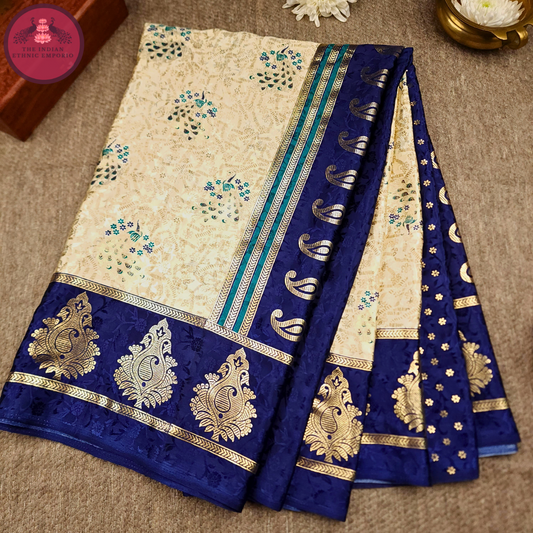 Navy Blue Color God Figurine Printed Gicha Silk Saree From 'Gicha Glory' Collection- DEVLOK