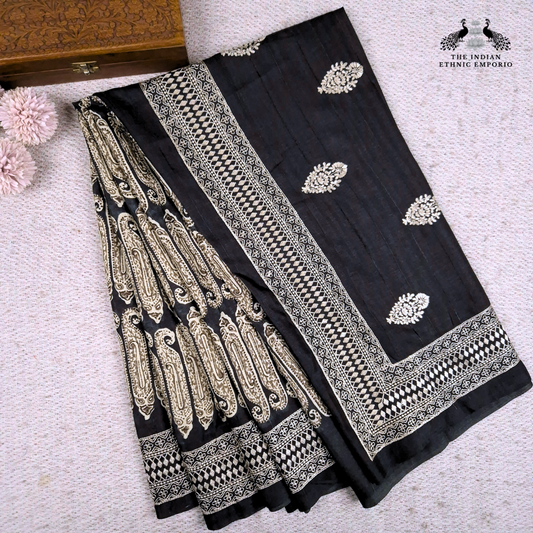 Premium Handloom Silk Saree with Block Print & Zari Weave