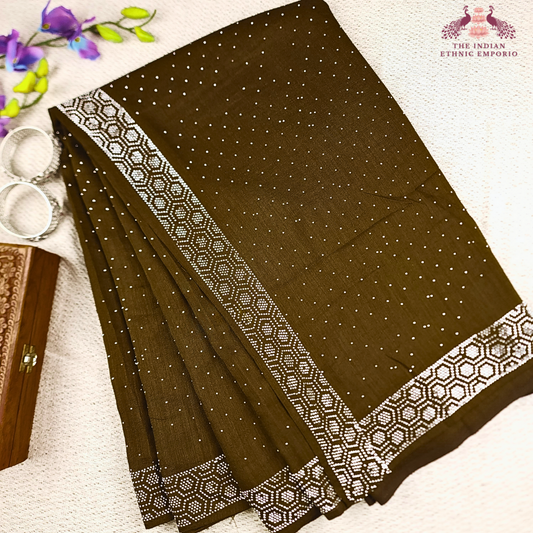 Printed Gicha Silk Saree From 'Gicha Glory' Collection- Brown Beauty
