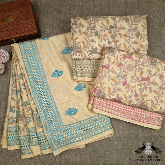 Tussar Silk Saree with Embroidery & Shikaar Print